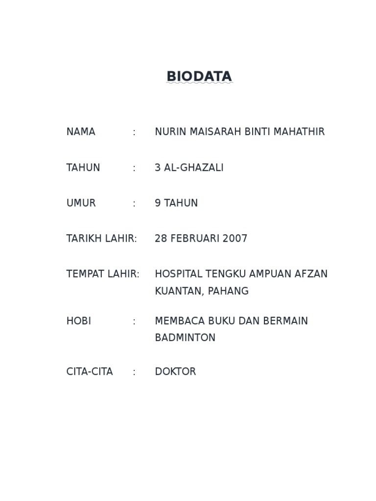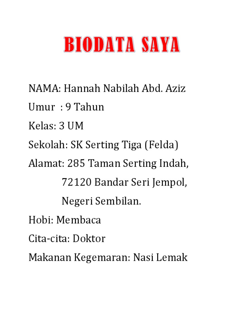Contoh Biodata Untuk Buku Skrap